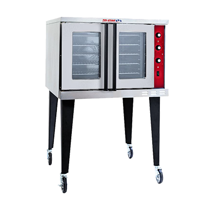 Convection Oven, gas, single deck, rotary controls, (2) speed motor, independent doors, double pane thermal glass, (5) racks, removable (11) position rack guides, porcelain enamel interior, stainless steel front, sides, top & doors, legs, 1/4 HP, 60,000 BTU, cETLus, cULus, UL, CE
